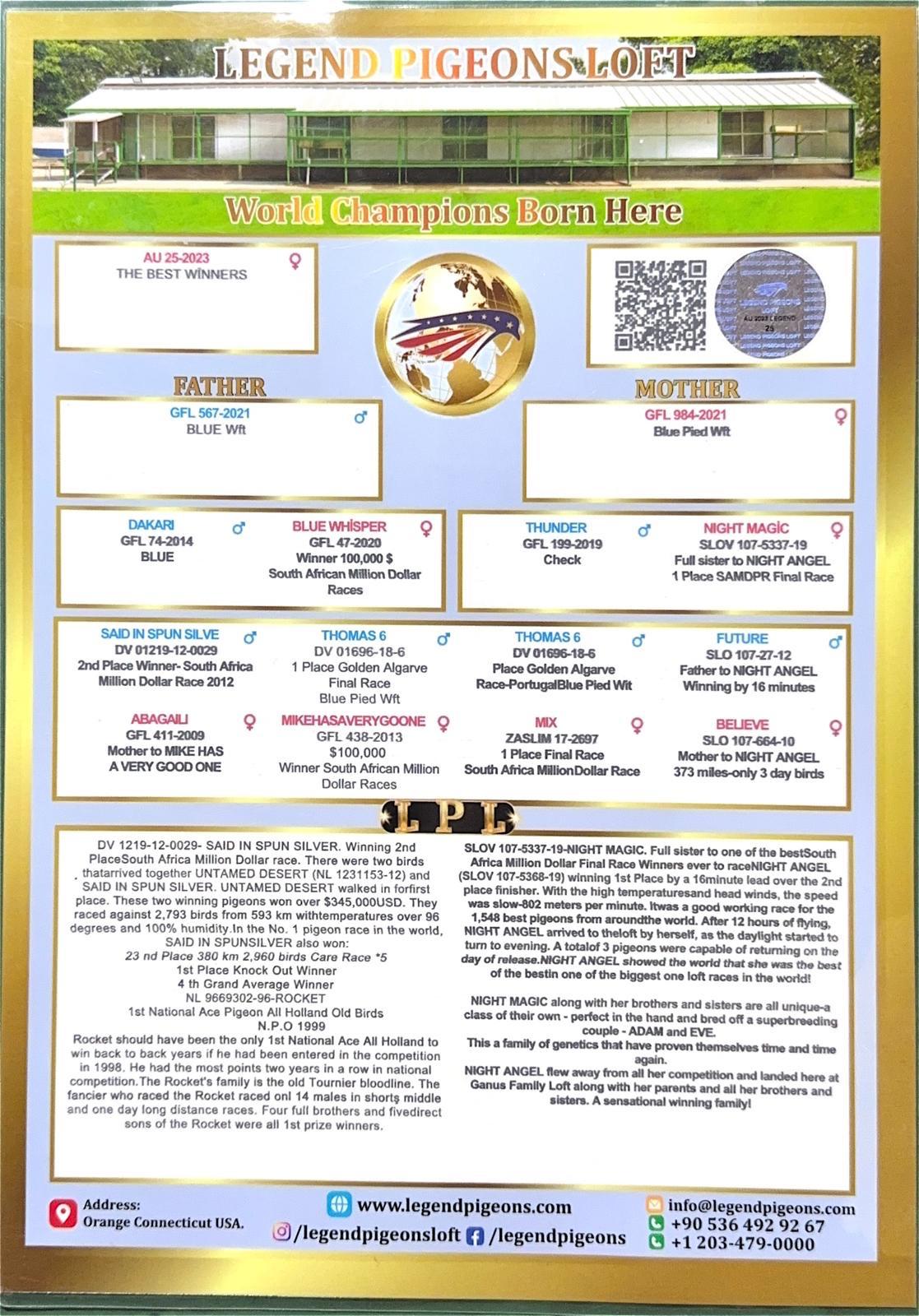 Dişi AU-25-2023 NIGHT ANGEL LEGEND PİGEONS