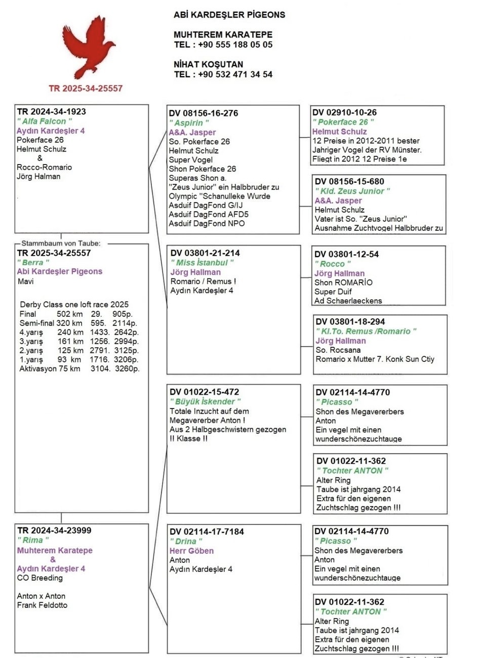 Dişi TR-34-25557 FİNAL 29 ACE PİGEON 125 ABİ KARDEŞLER RECEP KOŞAR